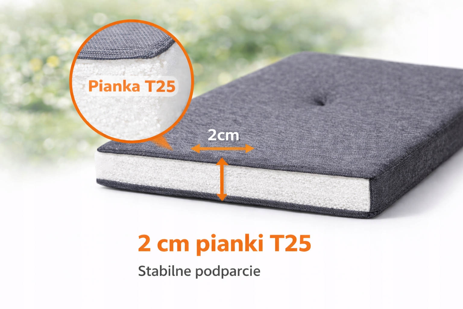 ✔️ Komfort na długie godziny – grubość 2 cm i gęstość pianki T25 zapewniają wygodę podczas siedzenia.
