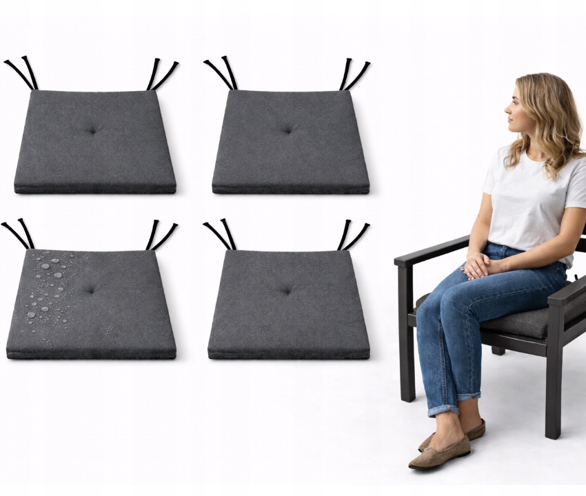 ? 4x PODUSZKA OGRODOWA WODOODPORNA NA KRZESŁO 40×40 cm ?