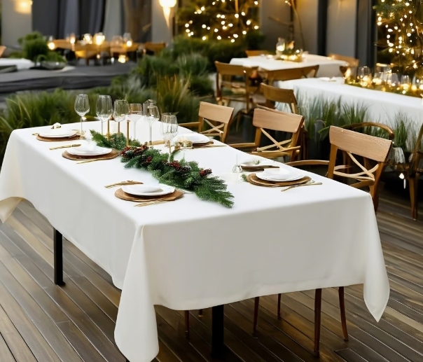 Połącz praktyczność z elegancją dzięki naszemu białemu obrusowi plamoodpornemu. Idealny na codzienne posiłki, rodzinne uroczystości czy wyjątkowe okazje – dodaje stołowi schludnego i gustownego charakteru.