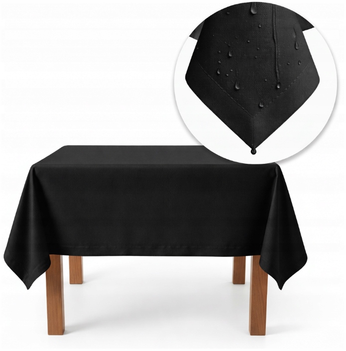 Połącz funkcjonalność z ponadczasową elegancją głębokiej czerni dzięki naszemu plamoodpornemu obrusowi. Idealny zarówno na codzienne posiłki, jak i rodzinne uroczystości czy wyjątkowe okazje — podkreśla styl stołu, dodając mu szyku, klasy i wyrafinowanego charakteru.