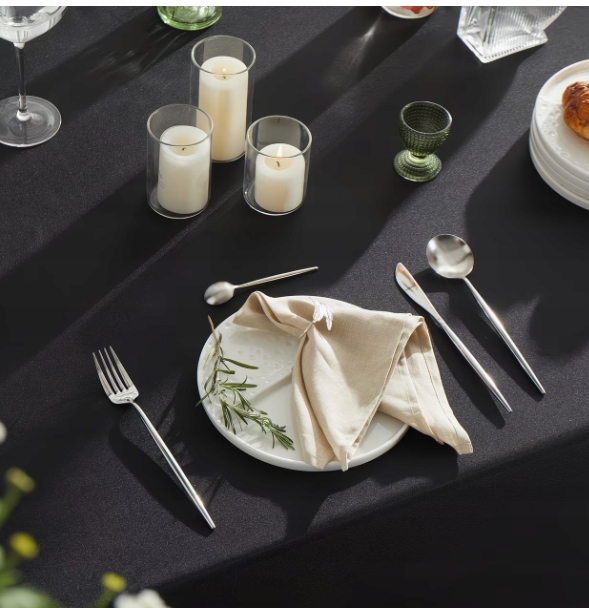 Połącz funkcjonalność z ponadczasową elegancją głębokiej czerni dzięki naszemu plamoodpornemu obrusowi. Idealny zarówno na codzienne posiłki, jak i rodzinne uroczystości czy wyjątkowe okazje — podkreśla styl stołu, dodając mu szyku, klasy i wyrafinowanego charakteru.